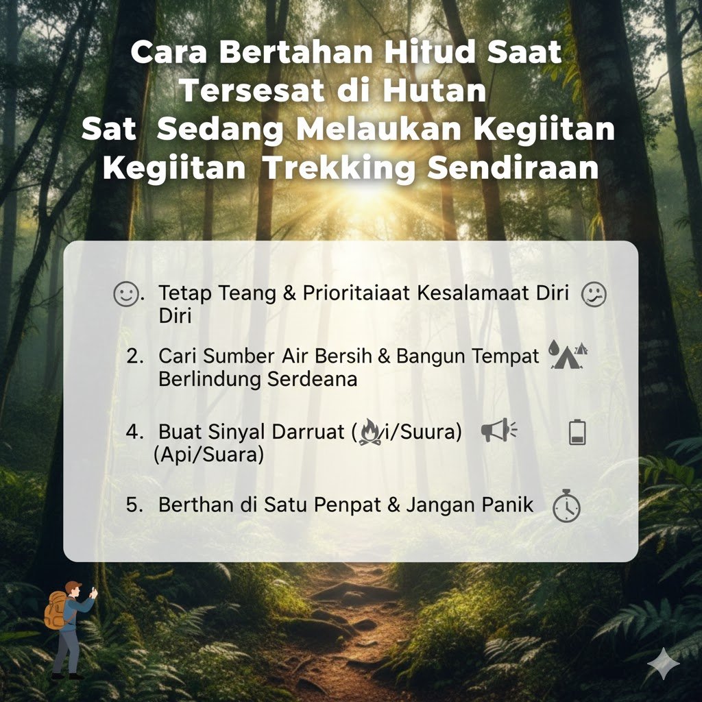 Melakukan perjalanan trekking sendirian memberikan kepuasan batin dan kebebasan yang luar biasa bagi para pencinta alam. Namun, petualangan ini membawa risiko tinggi, salah satunya adalah kehilangan arah atau tersesat di tengah rimbunnya hutan. Kondisi psikologis saat menyadari diri tersesat sering kali memicu kepanikan yang justru memperburuk situasi. Memahami teknik dasar kelangsungan hidup atau survival adalah kunci utama untuk tetap selamat hingga bantuan datang atau jalan keluar ditemukan. Kesiapan mental dan pengetahuan navigasi dasar akan menjadi pembeda antara keselamatan dan bahaya yang fatal dalam kesendirian di alam liar.